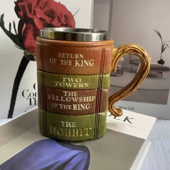The Hobbit And Lord of the Rings Inspired Book Mug For Collectors combines artistic drinkware with a literary theme, creating a distinctive mug for readers and collectors. Styled to resemble stacked books, it immediately evokes a rich bookish atmosphere perfect for morning coffee, tea breaks, or as décor in your favored reading spot. This literary theme coffee mug is ideal for home use, office desks, cafés, and bookshops.