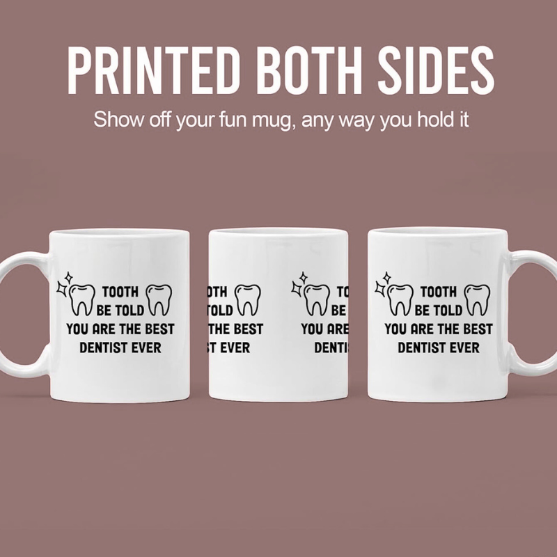 This Tooth To Be Told Dentist Appreciation Text Printed Ceramic 11oz Coffee Mug is intended for individuals who work in dentistry or enjoy field-related humor. It features printed text across both sides to support visibility whether held in the left or right grip. Its design is tailored for casual or workspace environments, where small functional items serve multiple roles.