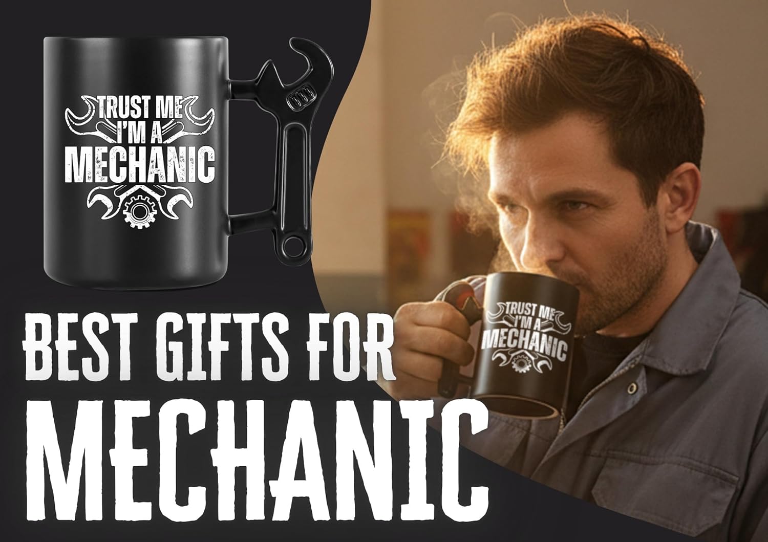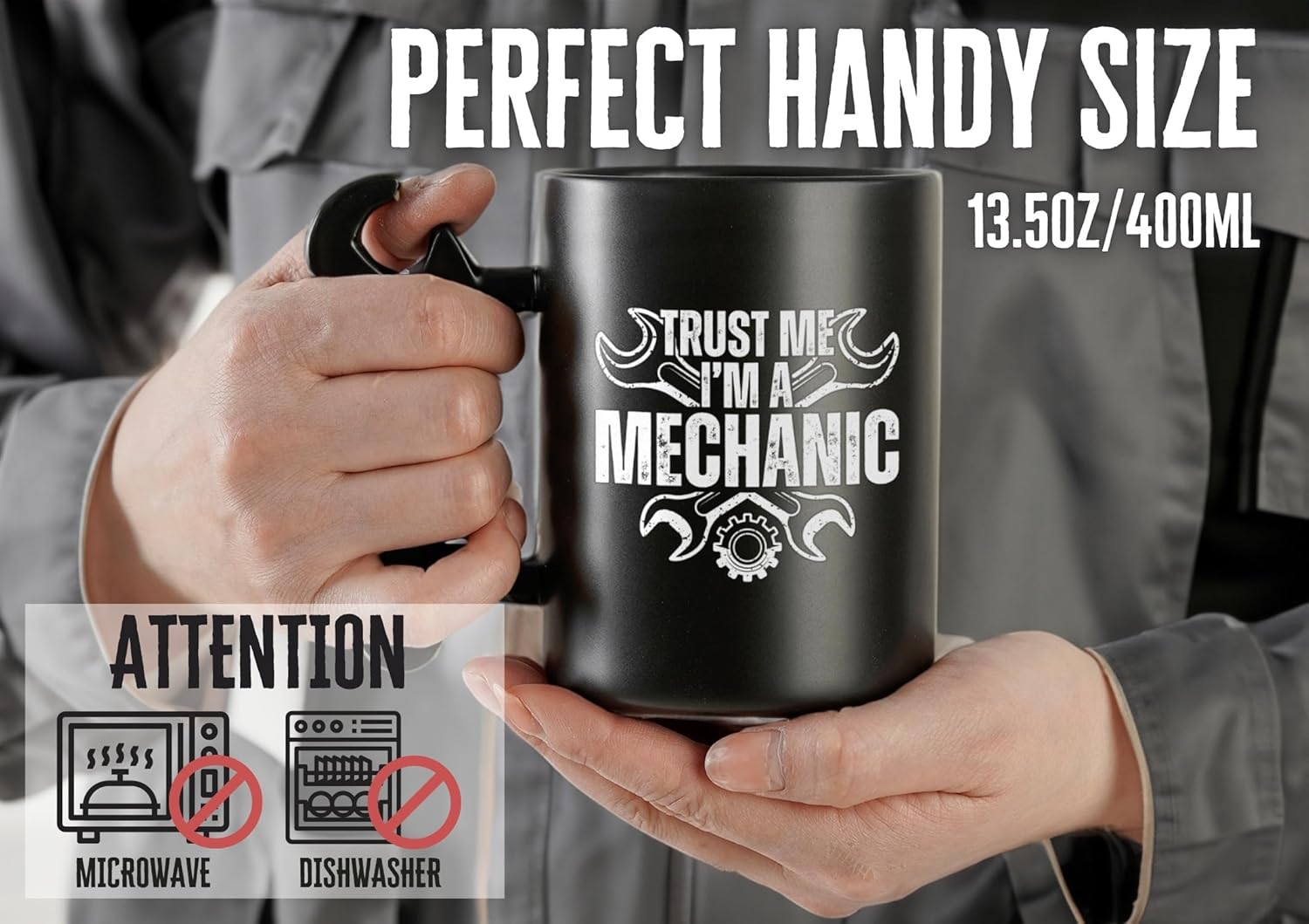 The Mechanic Wrench Handle Mug offers a practical and visually striking solution for enjoying coffee or tea. With its 13.5oz capacity, ceramic construction, and wrench-shaped handle, it reflects the personality and pride of automotive professionals. The bold “Trust Me I’m A Mechanic” message, paired with workshop-inspired graphics, makes it suitable for garages, kitchens, and offices alike.