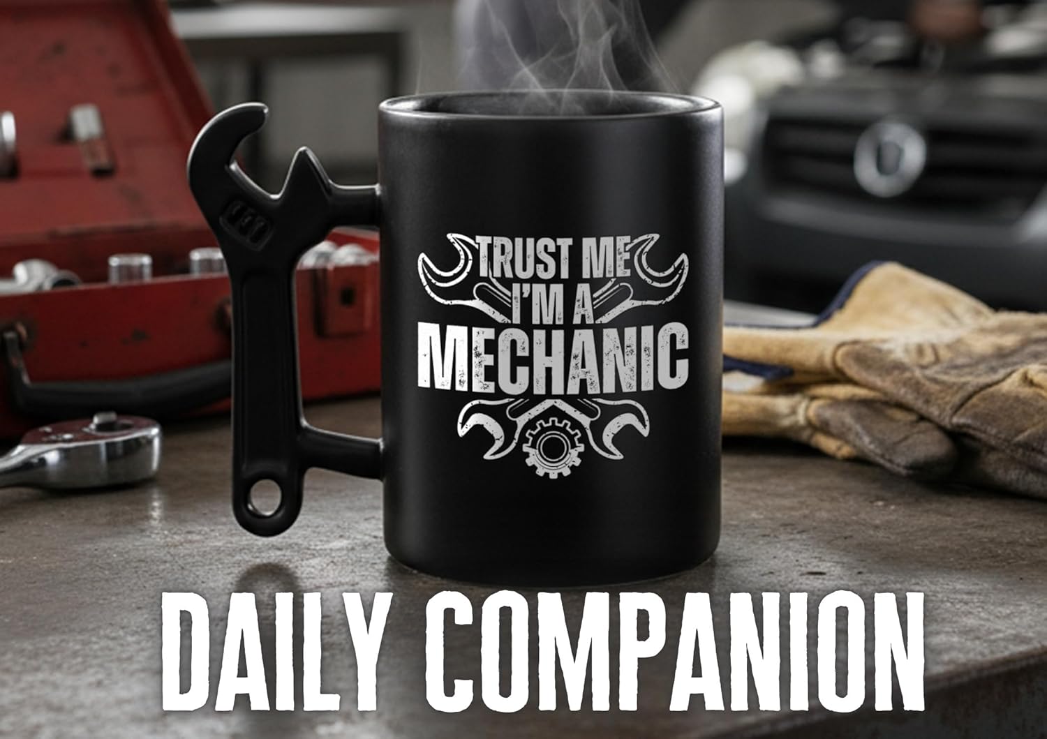 The Mechanic Wrench Handle Mug includes thoughtful details that reflect mechanical culture while supporting everyday use: