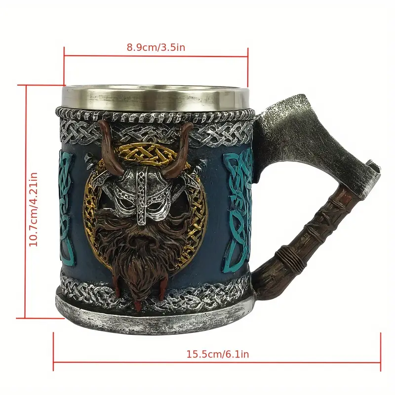 Step into a world of bold design with this Warrior Themed Drink Mug With Axe Handle And Horned Helmet Design. Created for those who enjoy collecting themed items or serving beverages with flair, this piece stands out with a distinctive axe-shaped side grip and a detailed crest. The design draws inspiration from ancient battle aesthetics, merging tradition and functionality into a solid beverage holder.