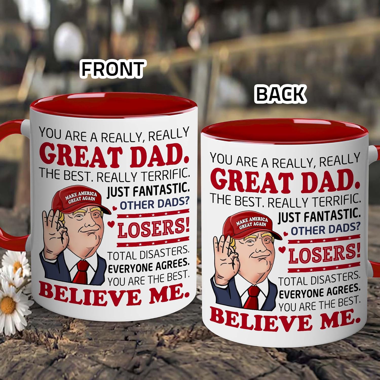 The You Are A Really Really Great Dad Printed Coffee Mug offers a clear message with a clean layout, delivering purpose through printed words. Built as a ceramic cup, this item is suitable for hot and cold drinks across a variety of daily routines. With a graphic quote presented in bold, long-lasting ink, this mug supports clear visual display without fading from regular use.
